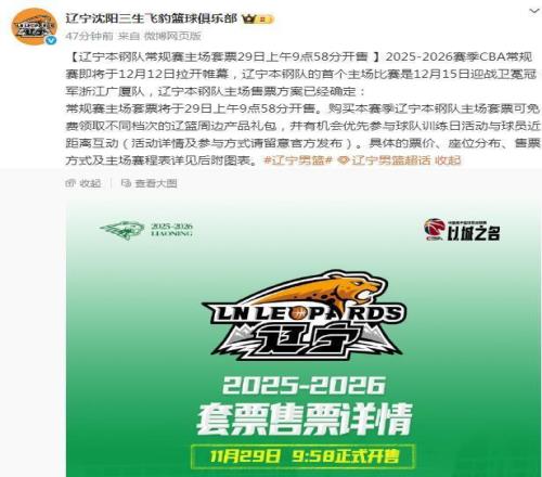11月27日,目前仍是CBA休赛期,不过新赛季很近了。辽宁队是大家一直关注的,球队今夏忙碌,主要是全运会的备战和比赛。打完全运会后,辽宁队球员短暂休假,近期外援陆续到队,球队开始了CBA新赛季的备战。不久前媒体发布消息,辽宁队主场的套票价格公布。