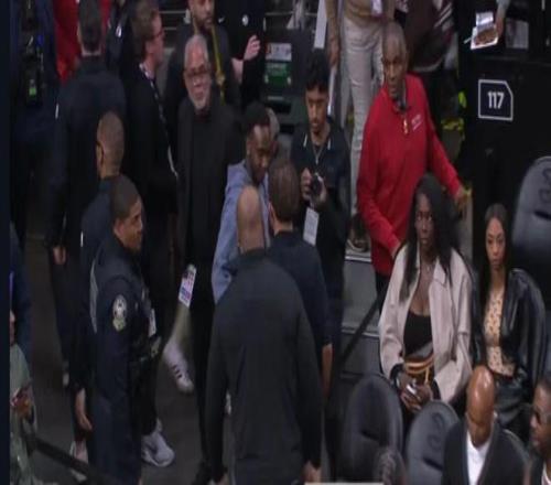 他还能保持足够的职业性,坐在独行侠的替补席,看一节比赛...