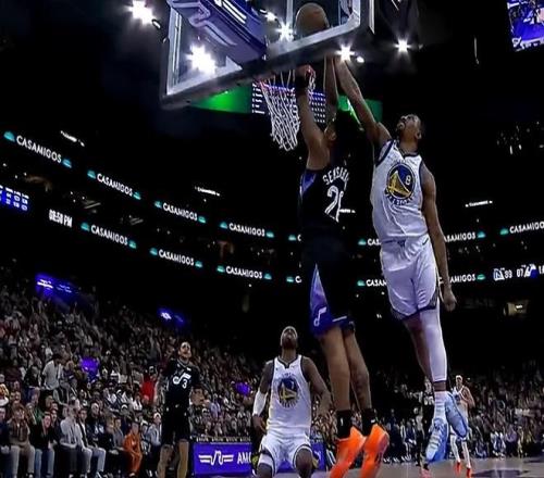 易边再战,马尔卡宁接球冲击内线,对抗追梦滞空双手暴力隔扣。库里连续三分命中和格林击掌庆祝,勇士已领先爵士近20分。梅尔顿封盖森萨博裁判延迟响哨,勇士挑战失败裁判维持原判,科利尔压哨上篮打进,爵士轰出一波27-10追到个位数分差。