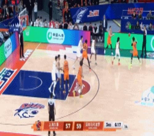 郑永刚无奈换回卡巴,深圳继续把球交给贺希宁处理,贺希宁延续火热手感靠个人能力里突外投再得7分(三节砍32分),但受困于白边内线的压制,深圳始终没能将分差缩小,刘铮飚进关键三分,白边抢下篮板再补扣,上海领先来到7分。