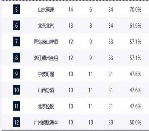 宁波队、山西队与北控队三队同为10胜11负,形成“三足鼎立”之势,排名随时可能互换。其中,北控队连续爆冷击败广东与青岛,状态火热,成为本赛季最大黑马之一。广州队以10胜10负守住季后赛门槛,胜率刚好过半,是“生死线”上的典型代表。