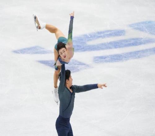 1月24日,中国组合隋文静(上)/韩聪在双人滑自由滑比赛中。最终,他们获得国际滑联四大洲花样滑冰锦标赛双人滑亚军。 新华社发