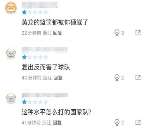 本轮浙江德比,双方贡献了一场打铁大战,在对方孙铭徽和布朗手感都不太理想的情况下,程帅澎也并没有把握住机会,帮助球队取胜。全场比赛他首发出战25分钟,10中0,三分球6中0,仅靠罚球得到2分。有球迷直言:这状态就别去霍霍国家队了。