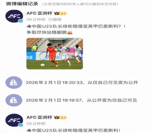 亚洲杯官方账号在发布动态,写道:“中国U23队长徐彬租借至英甲巴恩斯利!争取尽快站稳脚跟”。