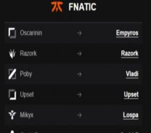 体育资讯11月29日报道宣称 近日网传FNC新赛季的阵容名单,上中辅有变动。