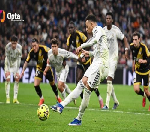 西甲第22轮,皇家马德里主场2-1击败巴列卡诺,姆巴佩在比赛99分34秒主罚点球破门,据统计,这是皇马本世纪西甲最晚的制胜球。